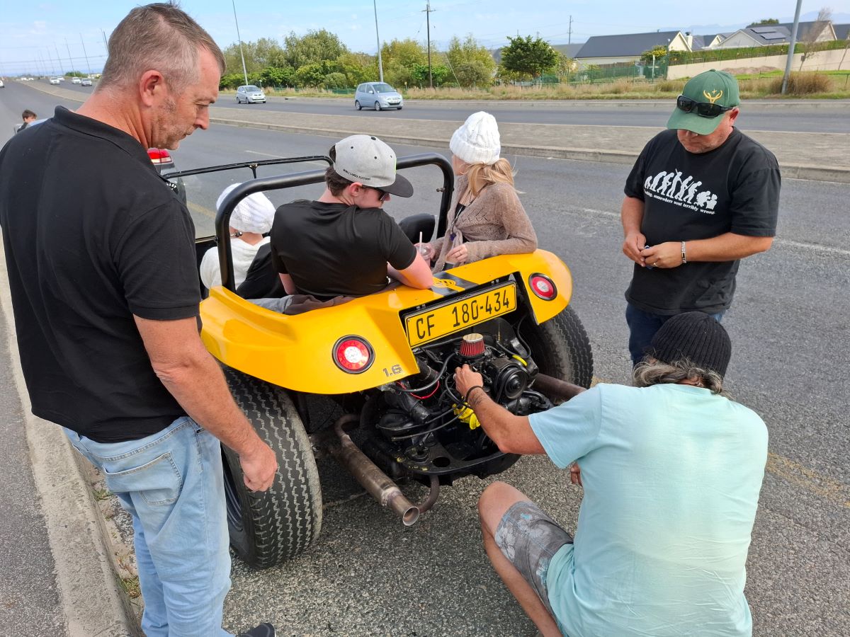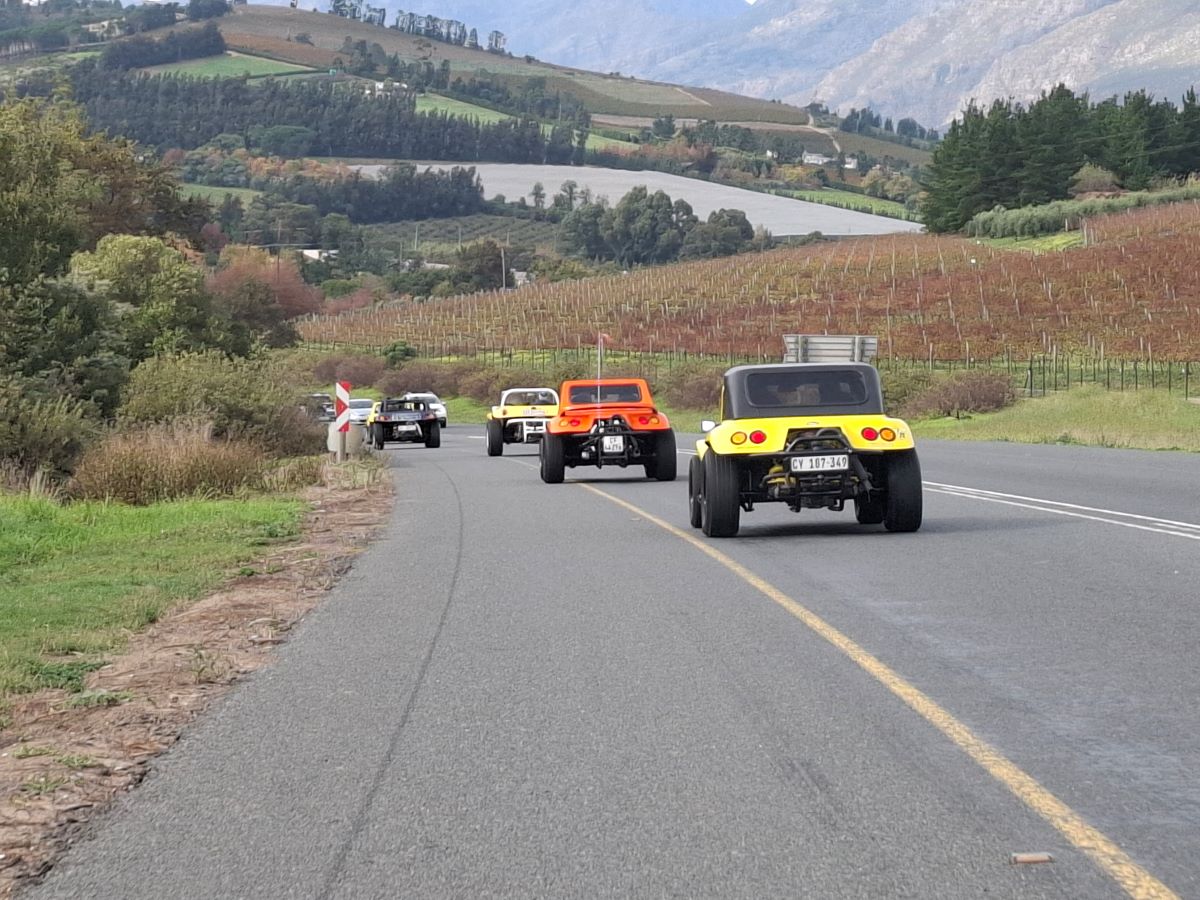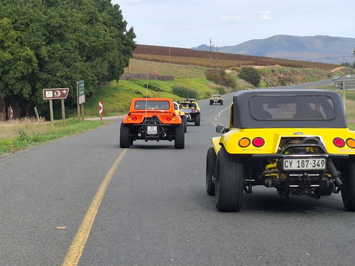 Our Wild Buggers beach buggy family, including some awesome VW air-cooled vehicles, all lined up bright and early at the Uys Krige Lookout point. We were buzzing with excitement, ready to hit the road for Wiehann’s Run. – it’s going to be a day full of fun, friends, and fantastic drives!Talk about a sight for sore eyes! Our Wild Buggers beach buggy family, including some awesome VW air-cooled vehicles and classic VWs, all lined up bright and early at the Uys Krige Lookout point. We were buzzing with excitement, ready to hit the road for Wiehann’s Run. Just look at these beauties – it’s going to be a day full of fun, friends, and fantastic drives!Our Wild Buggers beach buggy family, including some awesome VW air-cooled vehicles, all lined up bright and early at the Uys Krige Lookout point. We were buzzing with excitement. it’s going to be a day full of fun, friends, and fantastic drives!Nothing beats the open road with your fellow Wild Buggers! Here we are, hot on the heels of Anthony in his brilliant yellow 1600 VW air-cooled Salamander beach buggy, Bumble Bee, with Brent close behind in his zesty orange Wasp. And check out that classic black and white Kombi giving us a friendly wave as it overtakes! This is what the Wild Buggers Beach Buggy Club is all about – good vibes, great drives, and a convoy of awesome VW classics, all enjoying Wiehann’s Run.First stop on “Wiehann’s Run” and already the vibes are immaculate! Our Wild Buggers crew taking a well-deserved breather at Potbelly Pantry in Klapmuts. Nothing beats stretching the legs, grabbing a quick coffee, and having a good old chat in the parking lot surrounded by our awesome beach buggies and classic VWs. This is what the Wild Buggers Beach Buggy Club is all about – fellowship and fun!Even on our fun runs, the Wild Buggers family always shows up for each other. Here are some of our amazing ladies, taking a moment at Potbelly to show their love and respect for Andre and Karen. The black clothing is a heartfelt tribute, while the splash of pink honours their beautiful daughter. It’s a reminder that we’re more than just a club; we’re a family who stands together.Even our legendary Wild Buggers ouens know the importance of a good chat! Here they are, taking a breather on the balcony at Potbelly Pantry during Wiehann’s Run. Notice everyone wearing something black – it’s our small but mighty way of showing love and respect for Andre and Karen. These are the moments that truly build our VW family!And here she is – the lovely entrance to Potbelly Pantry, our very first pit stop on “Wiehann’s Run”! This charming spot in Klapmuts was the perfect place for our Wild Buggers to stretch their legs, grab a coffee, and just soak up the good vibes before hitting the road again in our awesome beach buggies and air-cooled VWs.You gotta do what you gotta do on a Wild Buggers adventure! Here’s Tony, making ingenious use of the back seat of Chris’s awesome yellow 1600 VW air-cooled Salamander beach buggy as his personal “pharmacy” table. Just another moment of real-life on Wiehann’s Run!The Potbelly parking area wasn’t just for our awesome beach buggies and air-cooled VWs! It was the perfect spot for our Wild Buggers to just hang out, catch up, and share a few laughs during Wiehann’s Run. Everyone’s wearing something black, of course, showing our love and respect. It’s these simple moments that make our VW family so strong!Engines humming, sun shining, and the open road calling! Here we are, the Wild Buggers crew, cruising along after a great stop at Potbelly. Our fantastic beach buggies and air-cooled VWs are making quick work of the kilometres, all heading towards our next exciting spot on Wiehann’s Run. The adventure continues!This is what it’s all about! Nothing beats a fantastic drive with our Wild Buggers crew through some seriously stunning scenery on Wiehann’s Run. Our beach buggies and other cool VW air-cooled vehicles were made for these roads, and we were soaking up every beautiful kilometre. Pure motoring bliss!You know you’re making good progress on a Wild Buggers run when you start passing familiar landmarks! Here’s our awesome convoy of beach buggies and air-cooled VWs cruising right past the turn-off for Elsenburg and Muldersvlei. The journey for Wiehann’s Run was smooth, scenic, and full of good vibes as we headed to our next fun stop!You just can’t beat days like this! Our Wild Buggers convoy in full swing, cruising through some absolutely breathtaking scenery on Wiehann’s Run. With our beach buggies and air-cooled VWs rolling along, every turn was a postcard moment. This is what pure driving joy looks like!Hello there, little town! Our Wild Buggers convoy, a parade of awesome beach buggies and air-cooled VWs, making a grand entrance. The open road is great, but it’s always fun to see what a new place holds. We’re officially arriving at our next destination on Wiehann’s Run!Even our awesome beach buggies have to play by the rules! Here we are, patiently stopped at a robot, right behind Anthony and his fantastic yellow 1600 VW air-cooled Salamander beach buggy, Bumble Bee. Just a quick pause before the Wild Buggers convoy gets back to cruising on Wiehann’s Run!Who says our beach buggies are only for tar? We hit a sweet little stretch of gravel road on Wiehann’s Run today, adding a bit of extra adventure! It was the perfect warm-up before arriving at our next destination: the legendary milkshake stop! The Wild Buggers love a bit of dust!