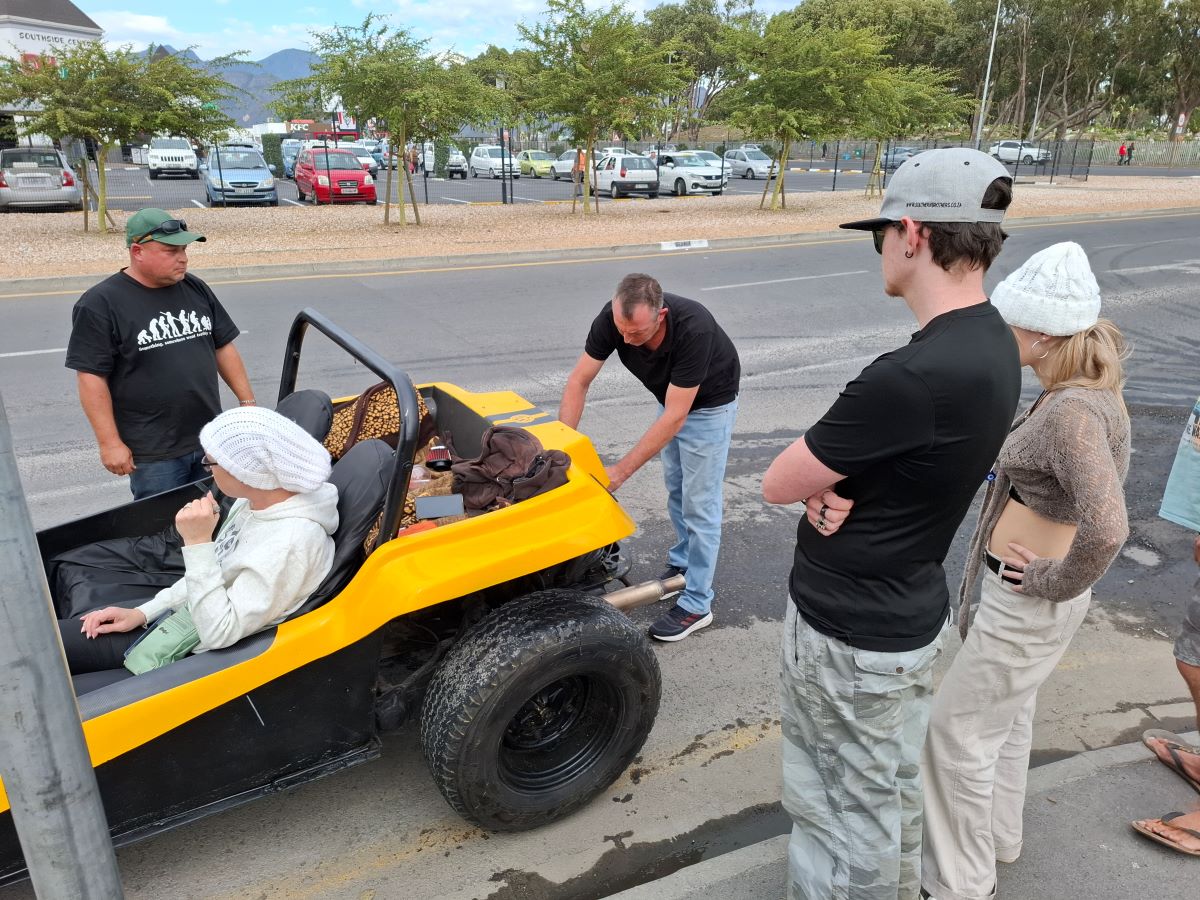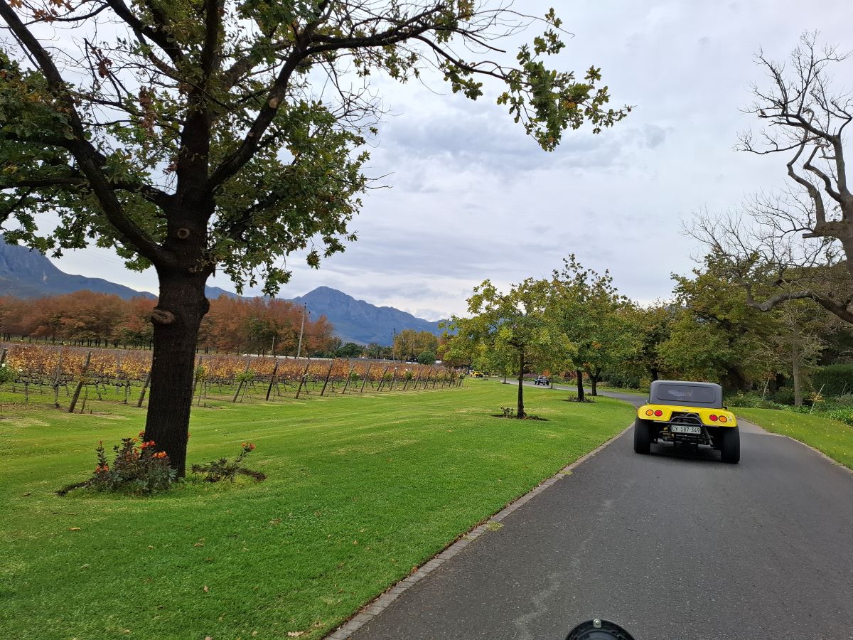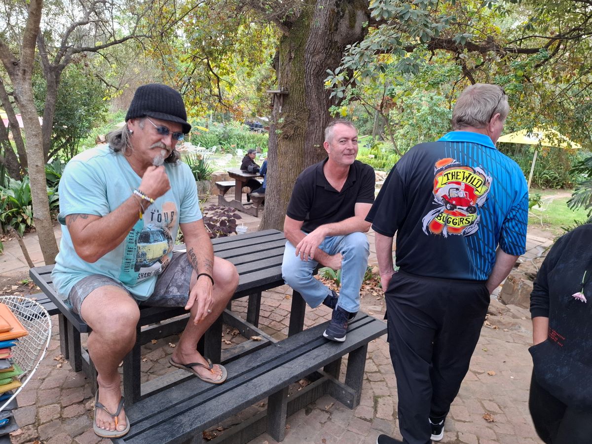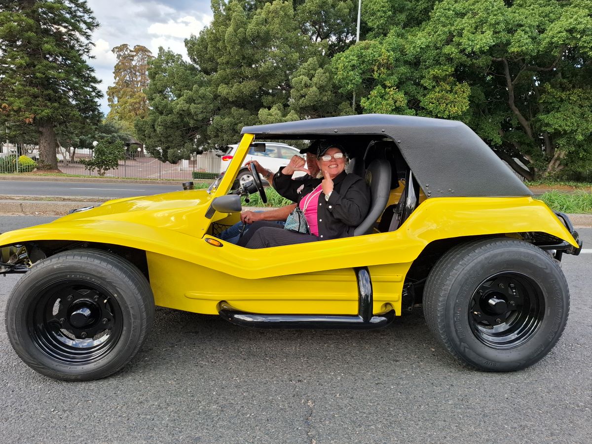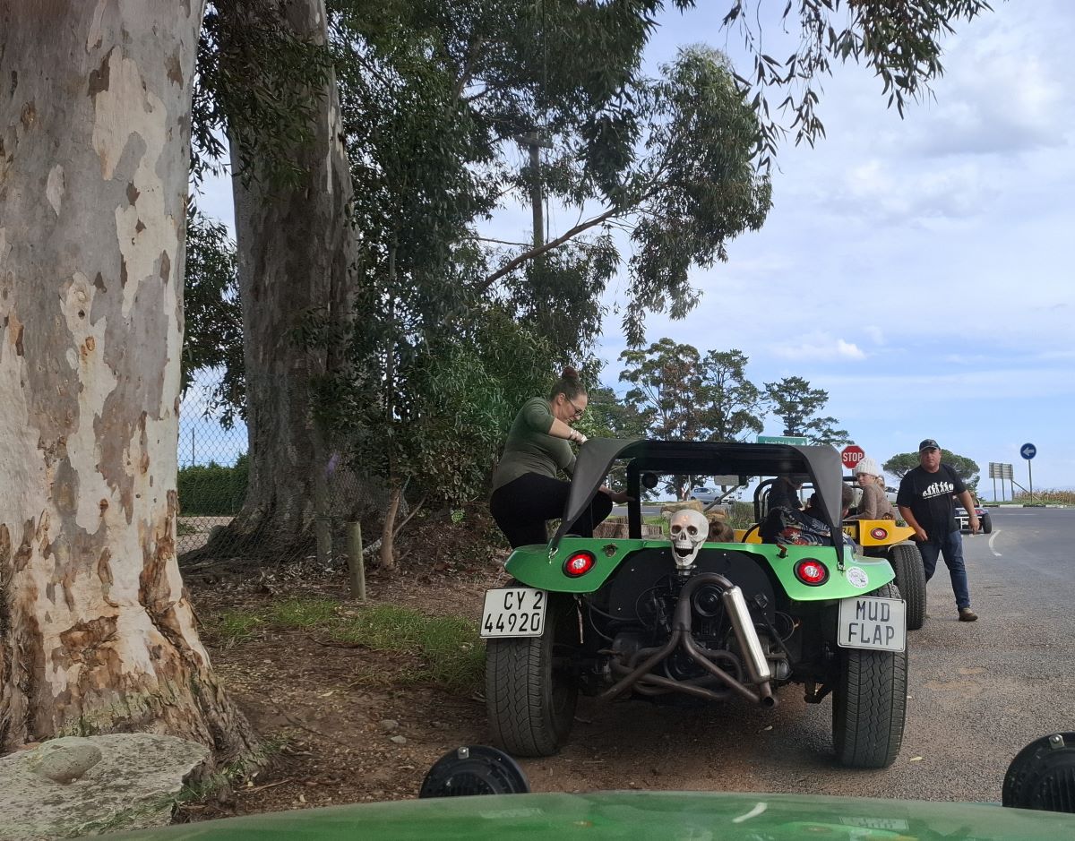 We’ve arrived! Our awesome beach buggies are finding their spots in the parking area at Helderberg Farm, the legendary milkshake stop on Wiehann’s Run. The anticipation for those strawberry delights is definitely building among the Wild Buggers crew!We’ve made it! Our awesome beach buggies are finding their perfect spots at Helderberg Farm – you can even spot one of the buildings! This was the legendary milkshake stop on Wiehann’s Run, and the Wild Buggers crew was more than ready for those famous farm-fresh treats. Mission accomplished!Success! Our fantastic beach buggies are all nicely parked at Helderberg Farm, the legendary milkshake stop on Wiehann’s Run. Engines off, and our Wild Buggers crew is stretching their legs, ready for those famous farm-fresh strawberry milkshakes. Time to get out and enjoy the good vibes!Chris and Sandra are ready to hop out of their beach buggy at Helderberg Farm. That famous milkshake is calling!You know us Wild Buggers – we love a good chat! Even after getting our beach buggies perfectly parked at Helderberg Farm, we took our sweet time, enjoying some relaxed conversation in the sunshine. Everyone looking sharp in their black attire, showing our respect. Just soaking up the awesome VW family vibes on Wiehann’s Run!That’s what being a Wild Bugger is all about! Here’s Faizal, being the perfect gentleman and helping Ayesha gracefully exit their awesome “Veep” beach buggy at Helderberg Farm. It’s these little moments of care and support that make our VW family so special on Wiehann’s Run.Even on a super fun Wild Buggers run, we make sure to take care of ourselves! Here’s Tony, focused on getting his medicine sorted in the parking area at Helderberg Farm. Just a little pit stop prep before more fun on Wiehann’s Run!You know it’s a serious discussion when the beach buggies become the main topic! Here are Chris, Anthony, and Jacques, deep in conversation about their awesome rides in the Helderberg Farm parking lot. And yes, everyone’s still showing that important respect in black. Just another perfect moment with the Wild Buggers on Wiehann’s Run!You know us Wild Buggers – we could chat about our beach buggies all day! But sometimes, the President (that’s me!) has to step in and remind everyone that legendary farm-fresh milkshakes are calling! Time to round up the troops and get moving towards that sweet treat at Helderberg Farm on Wiehann’s Run!The anticipation is real! Tony, Rhoodie, and Chris are patiently waiting in this beautiful spot at Helderberg Farm, surrounded by lovely gardens, for those legendary milkshakes. It’s almost time for the Wild Buggers’ sweet reward on Wiehann’s Run!Even our newest Wild Buggers are learning the art of patience! Here they are, settled comfortably at a table in the lovely Helderberg Farm gardens, chatting away while waiting for those highly anticipated shakes. And yes, it was a very, very, very long wait, but the company and the cause (our respect in black) made it all worth it on Wiehann’s Run!Still at Helderberg Farm, and yes, we’re still waiting for those milkshakes! Our Wild Buggers crew has perfected the art of patient anticipation in these beautiful gardens. But hey, when you’re surrounded by awesome company and your VW family, even a long wait becomes part of the adventure on Wiehann’s Run!Yes, we’re still waiting for those legendary milkshakes at Helderberg Farm on Wiehann’s Run, but hey, when your waiting room is this beautiful, who’s complaining too much?! Our Wild Buggers crew found plenty to admire in the stunning gardens. Patience rewarded by picturesque views!Still on the milkshake mission at Helderberg Farm, and our awesome Wild Buggers ladies are showing true grit! They’re still waiting patiently (or maybe they’re just sending good vibes for those strawberries to grow faster!). We might have been a bigger group than they expected, perhaps they had to go plant some extra! All for a good cause, of course, remembering Andre and Karen.Even the organisers need their milkshake fix! Here are Chris, Wiehann (the man of the hour!), and Jacques, patiently waiting their turn for those famous Helderberg Farm strawberry milkshakes. The anticipation is building, and the reward is almost in sight!You can take the Wild Buggers to a milkshake stop, but you can’t keep ’em away from their beach buggies for too long! Even while waiting for those shakes, some of our crew gravitated back to the parking area for more vital discussions about their awesome rides. The passion is real!Talk about a head-turner! Check out Lerene’s absolutely stunning blue Kango beach buggy. With its powerful 1600 air-cooled Beetle motor and that incredible spray job, this ride is a true showstopper. What an awesome VW classic in our Wild Buggers family!Cruising in style! Here’s Fabian’s fantastic yellow Kango beach buggy, powered by a reliable 1600 VW Beetle motor. This bright ride always brings the sunshine to our Wild Buggers adventures!At last! The moment we’ve all been waiting for on Wiehann’s Run! Our Wild Buggers crew is finally getting their hands on those legendary strawberry milkshakes at Helderberg Farm. You can practically taste the joy in this photo!The Wild Buggers are off again! Dust, sunshine, and the open road – another epic adventure begins on the scenic gravel roads near Helderberg Farm. Where will the road take us next?Even our awesome beach buggies need a breather! A quick pitstop for the Wild Buggers crew to stretch those legs, share a laugh, and catch up before hitting the road again. Every stop is a chance for more fun on Wiehann’s Run!Even our awesome beach buggies have to wait their turn! Here’s the Wild Buggers convoy paused at a traffic light, with a cool orange VW Beetle adding a pop of color to the scene. Just a quick pause before we’re back on the road!Well, you can’t have an adventure without a little hiccup! Looks like we’ve got